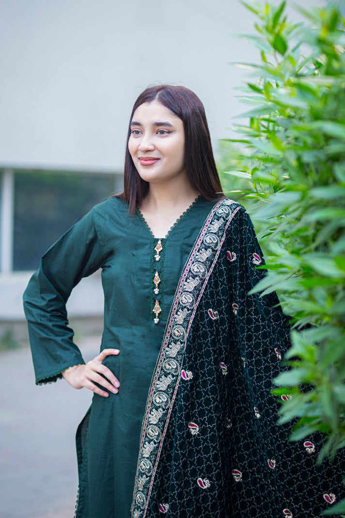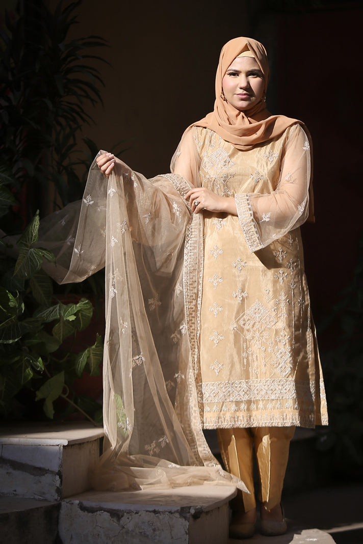 3 Piece - Flatbed Paste Embroidered Suit - 42501668